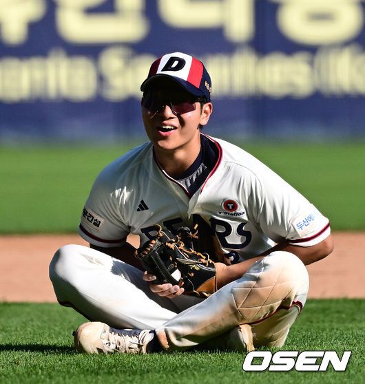 [OSEN=잠실, 지형준 기자] 25일 서울 잠실구장에서 2025 신한 SOL Bank KBO리그 두산 베어스와 NC 다이노스의 경기가 열렸다. 이날 두산이 5-3 승리를 거두며 NC에 시즌 첫 승을 거뒀다. 9회초 2사에서 두산 임종성이 NC 김주원의 3루 플라이 타구를 처리하며 미소짓고 있다. 2025.05.25 /jpnews@osen.co.kr
