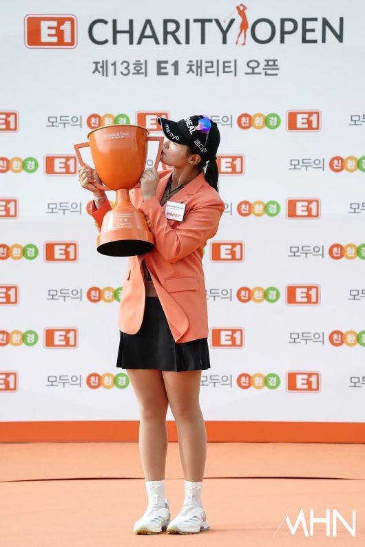 [mhn포토] 박현경, 우승 트로피에 짜릿한 키스