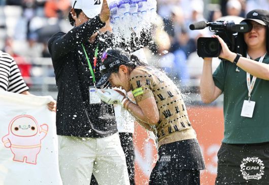 (서울=뉴스1) = 25일 경기 여주 페럼클럽에서 열린 '제13회 E1채리티 오픈'에서 박현경이 우승을 확정짓고 물세례를 받고 있다. (KLPGA 제공. 재판매 및 DB 금지) 2025.5.25/뉴스1photo_desk@news1.krCopyright ⓒ 뉴스1. All rights reserved. 무단 전재 및 재배포, AI학습 이용 금지.