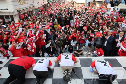 서산서도 큰절로 유세 시작하는 김문수 후보