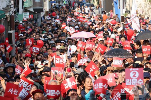 (서산=뉴스1) 김민지 기자 = 김문수 국민의힘 대통령 후보가 25일 오후 충남 서산시 중앙통 로데오거리에서 집중유세를 하고 있는 가운데 지지자들이 지켜보고 있다. (공동취재) 2025.5.25/뉴스1kimkim@news1.krCopyright ⓒ 뉴스1. All rights reserved. 무단 전재 및 재배포, AI학습 이용 금지.
