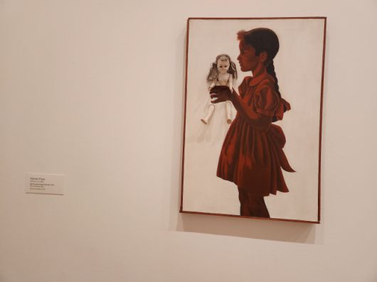 에이드리언 파이퍼, <인형이 함께 있는 다섯 살 때 자화상>, Oil on canvas, doll, 30 1/2 × 20 5/8 × 4 1/2" (77.5 × 52.4 × 11.4 cm), 1966유명저널'아트뉴스' 선정 2024년 'Top 200 Collectors'의 한 사람인 론티 에버스(Lonti Ebers)의 2022년 기증으로 MoMA의 소장품이 되었다. |