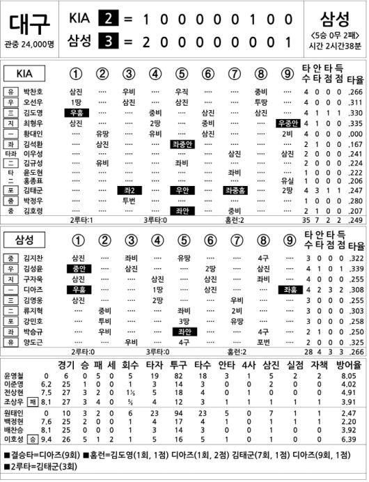 [2025 KBO리그 기록실] KIA vs 삼성 (5월 25일)