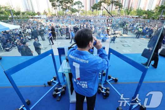 (아산=뉴스1) 안은나 기자 = 이재명 더불어민주당 대통령 후보가 캐스팅보트인 충청권 공략에 나선 25일 오후 충남 아산시 탕정역 한들물빛공원을 찾아 유세를 마친 뒤 목을 축이고 있다. 2025.5.25/뉴스1coinlocker@news1.krCopyright ⓒ 뉴스1. All rights reserved. 무단 전재 및 재배포, AI학습 이용 금지.