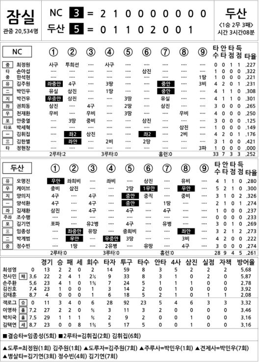 [2025 KBO리그 기록실] NC vs 두산 (5월 25일)