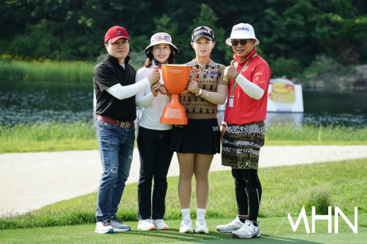 [mhn포토] 우승 트로피 들고 기념 촬영 하는 박현경과 가족들
