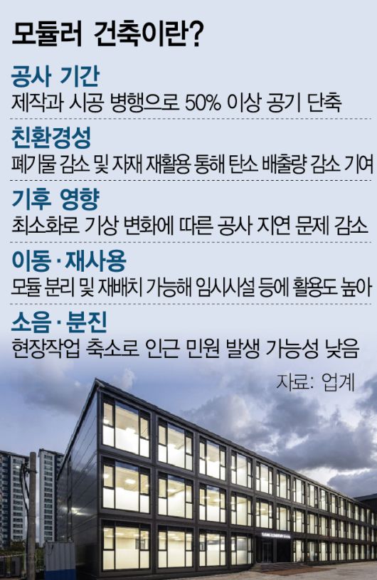 모듈러 건축 시장 전망은 밝은 편이다. 정부는 2020년 40년 이상 노후된 학교 재건축·리모델링 등을 골자로 한 ‘그린 스마트 미래학교’ 정책을 발표했다. 이를 통해 모듈러 건축 업체들은 전국 수백 곳의 초·중·고교에 새로운 교육 공간을 구축했다. 이러한 사업 경험을 바탕으로 호텔 및 주택, 병원, 군대 막사 등의 분야로 사업을 빠르게 확장해 나가고 있다.