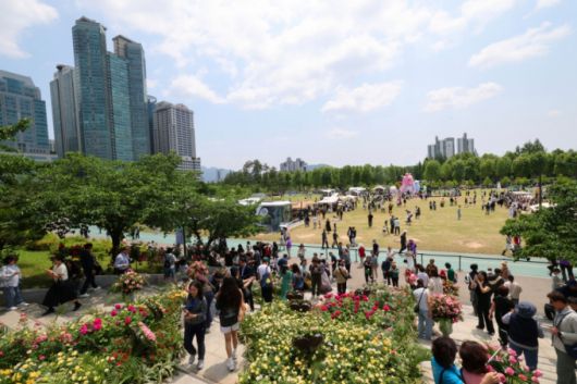 25일 서울국제정원박람회가 열리고 있는 서울 동작구 보라매공원이 나들이객으로 붐비고 있다./사진=뉴스1 |