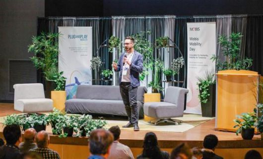 현대모비스 임직원이 지난4월 미국 디트로이트에서 개최한 ‘모비스 모빌리티 데이’에서 신기술을 발표하고 있다. |