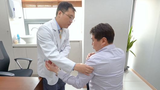 오십견의 대표적인 특징은 두 가지로 '능동적·수동적 운동 제한'으로, 스스로 팔을 들어도 올라가지 않고 남이 들어줘도 움직이지 않는 상태가 하나다.