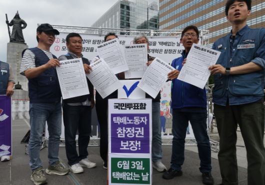 전국택배노동조합은 지난 21일 중앙선거관리위원회에 ‘택배노동자 참정권 보장을 위한 제도 개선 및 행정 조치 요청’ 공문을 공식 발송하기도 했다. 택배노조는 공문에서 “주요 택배 사업자에 선거일 휴무 시행 및 투표 기간 보장을 권고하는 지침을 마련해달라”고 요구했다.