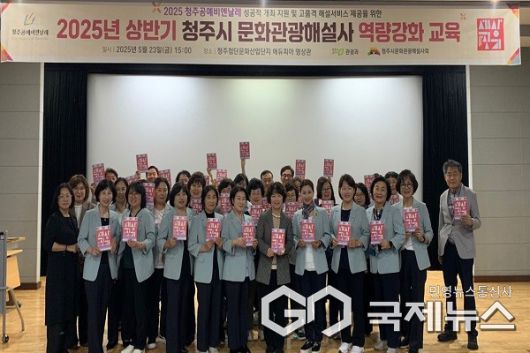 (청주=국제뉴스) 이재기 기자 = 충북 청주시는 지난 23일 청주첨단문화산업단지 에듀피아 영상관에서 '2025년 상반기 문화관광해설사 역량강화교육'을 실시했다고 밝혔다.