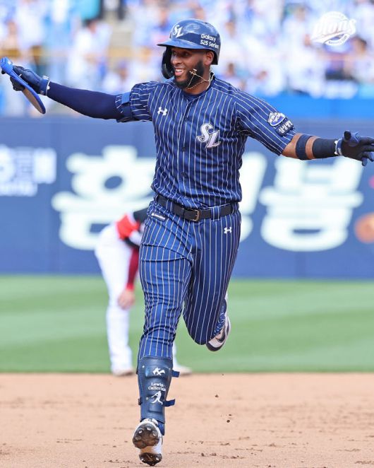 삼성라이온즈 르윈 디아즈가 끝내기 홈런을 터뜨린 뒤 환하게 웃으며 베이스를 돌고 있다. 사진=삼서라이온즈 |