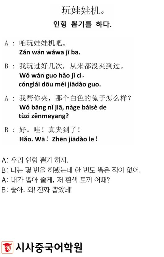[시사중국어학원의 리얼 중국어 회화] 인형 뽑기를 하다.