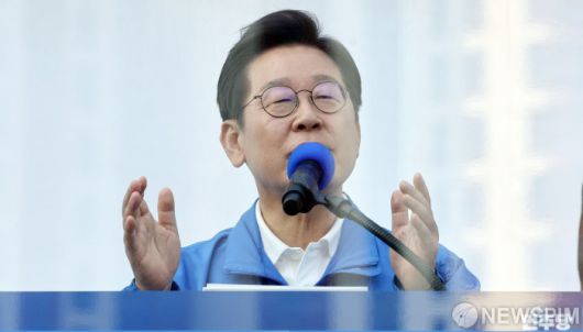 [아산=뉴스핌] 김학선 기자 = 이재명 더불어민주당 대선 후보가 25일 오후 충남 아산시 탕정역 한들물빛공원에서 유세하고 있다. 2025.05.25 yooksa@newspim.com