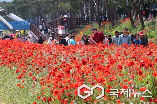 양귀비꽃이 절정을 맞은 꽃밭에는 가족 단위 방문객, 연인, 사진 동호회 등이 몰려 축제의 마지막을 만끽했다.