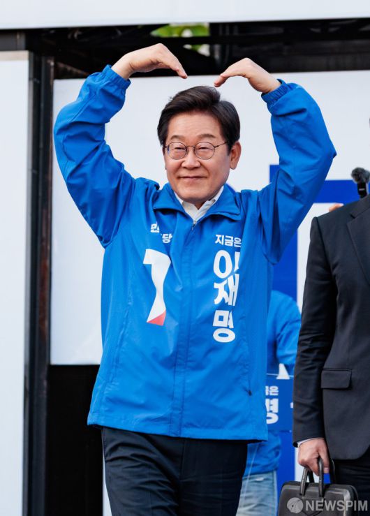 [아산=뉴스핌] 김학선 기자 = 이재명 더불어민주당 대선 후보가 25일 오후 충남 아산 한들물빛공원에서 열린 집중유세에서 지지를 호소하고 있다. 2025.05.25 yooksa@newspim.com