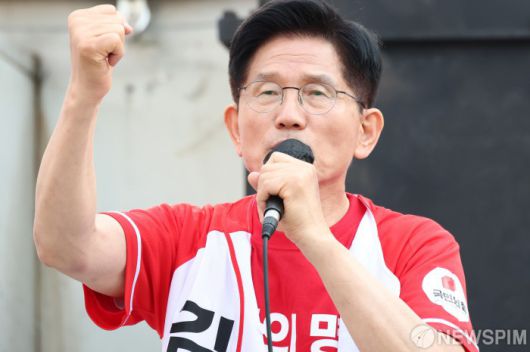 [서산=뉴스핌] 최지환 기자 = 김문수 국민의힘 대선후보가 25일 오후 충남 서산시 로데오거리에서 열린 유세 현장에서 지지를 호소하고 있다. 2025.05.25 choipix16@newspim.com