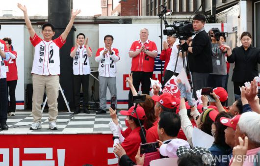 [서산=뉴스핌] 최지환 기자 = 김문수 국민의힘 대선후보가 25일 오후 충남 서산시 로데오거리에서 열린 유세 현장에서 지지를 호소하고 있다. 2025.05.25 choipix16@newspim.com