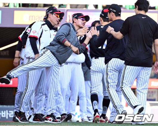 [OSEN=인천, 조은정 기자]프로야구LG 트윈스가 SSG 랜더스 상대로 위닝에 성공했다. LG는 25일 인천 SSG랜더스필드에서 열린 2025 KBO리그 SSG와 경기에서 9-3으로 승리했다.선두 LG는 이날 승리로 33승 1무 18패가 됐다. SSG는 25승 1무 25패로 승률 5할이 됐다. LG 염경엽이 오지환과 승리를 기뻐하고 있다. 2025.05.25 /cej@osen.co.kr