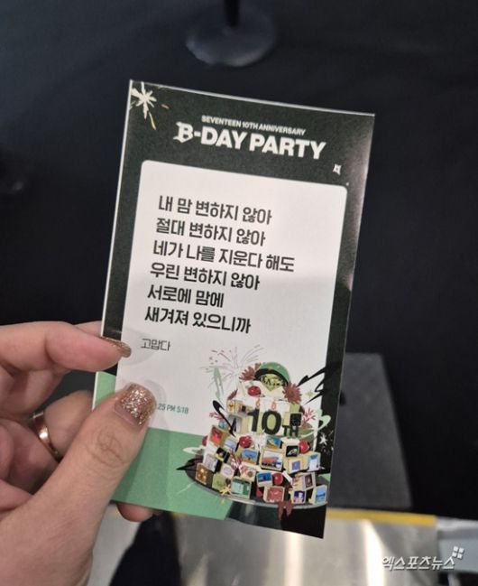 현장에는 다양한 국적의 취재진들까지 모여들어, 세븐틴의 10주년을 향한 세계적인 관심을 다시금 확인시켰다. 이번 'B-DAY PARTY'는 세븐틴의 데뷔 10주년을 기념해 팬덤 캐럿과의 여정을 되돌아보며 함께 축하하는 의미로 기획된 특별한 행사로, 현장 곳곳에는 팬들을 위한 다채로운 프로그램이 가득했다.