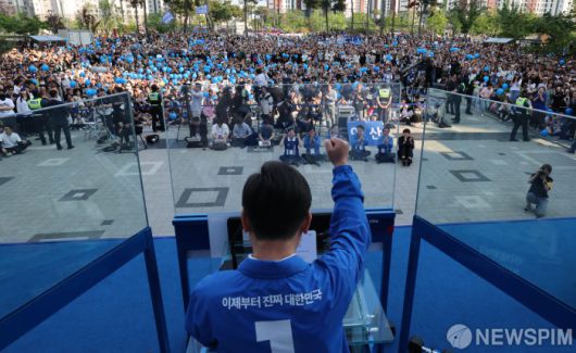 유권자 향해 주먹 쥔 이재명 더불어민주당 대선 후보