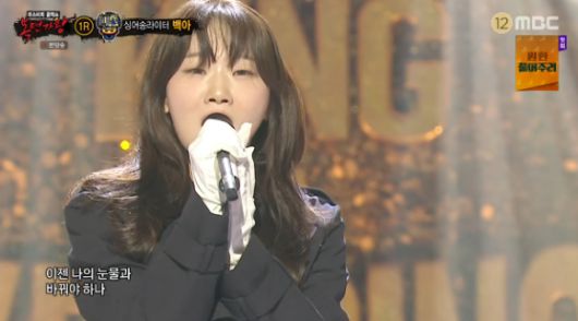 '복면가왕'의 '싱잉 인 더 레인' 정체는 싱어송라이터 백아였다. [사진=MBC 방송화면 캡처] |