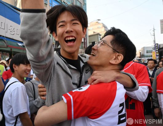 [당진=뉴스핌] 최지환 기자 = 김문수 국민의힘 대선 후보가 25일 충남 당진시장 오거리에서 유세를 하며 지지자들과 인사를 나누고 있다. 2025.05.25 choipix16@newspim.com