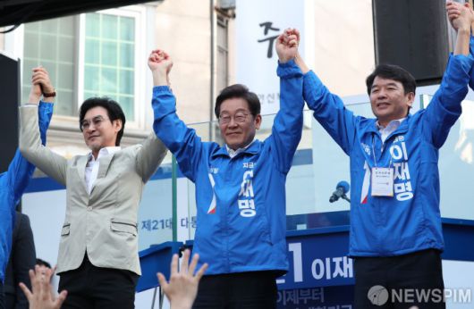 [천안=뉴스핌] 김학선 기자 = 더불어민주당 이재명 대선 후보가 25일 오후 충남 천안 신부문화거리 유세장에서 유권자들의 지지를 호소하고 있다.2025.05.25 yooksa@newspim.com |
