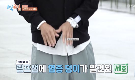 25일 방송된 KBS2 '1박 2일 시즌4'에서 멤버들은 전라남도 여수를 찾았다. 이날 오프닝에서 멤버들은 에너지 넘치는 모습으로 다 같이 어깨동무를 하고 뛰었지만 조세호 홀로 뛰지 못했다.