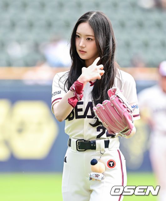 [OSEN=잠실, 지형준 기자] 신인 걸그룹 '키키'의 이솔이 25일 잠실야구장에서 열린 두산 베어스와NC 다이노스의 경기에서 승리기원 시구를 했다.