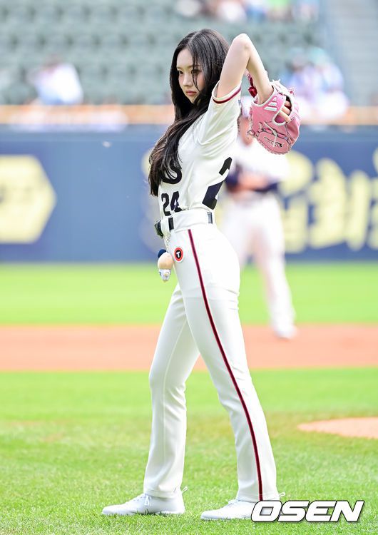 [OSEN=잠실, 지형준 기자] 신인 걸그룹 '키키'의 이솔이 25일 잠실야구장에서 열린 두산 베어스와NC 다이노스의 경기에서 승리기원 시구를 했다.