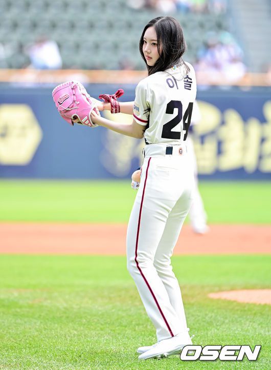 [OSEN=잠실, 지형준 기자] 신인 걸그룹 '키키'의 이솔이 25일 잠실야구장에서 열린 두산 베어스와NC 다이노스의 경기에서 승리기원 시구를 했다.