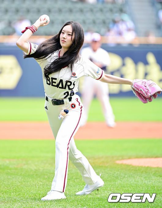 [OSEN=잠실, 지형준 기자] 신인 걸그룹 '키키'의 이솔이 25일 잠실야구장에서 열린 두산 베어스와NC 다이노스의 경기에서 승리기원 시구를 했다.