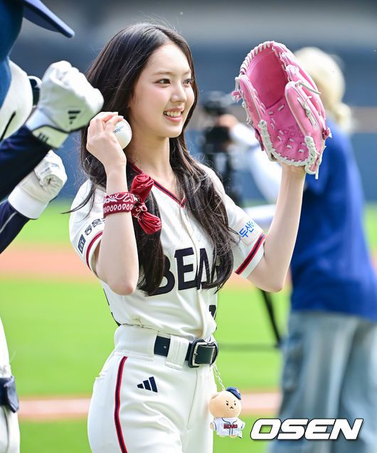 [OSEN=잠실, 지형준 기자] 신인 걸그룹 '키키'의 이솔이 25일 잠실야구장에서 열린 두산 베어스와NC 다이노스의 경기에서 승리기원 시구를 했다.