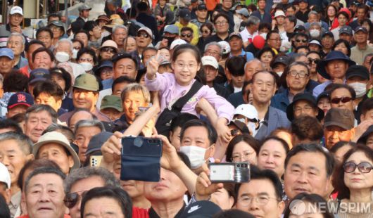 [당진=뉴스핌] 최지환 기자 = 김문수 국민의힘 대선 후보가 25일 충남 당진시장 오거리에서 열린 유세에서 지지를 호소하자 시민들이 지켜보고 있다. 2025.05.25 choipix16@newspim.com