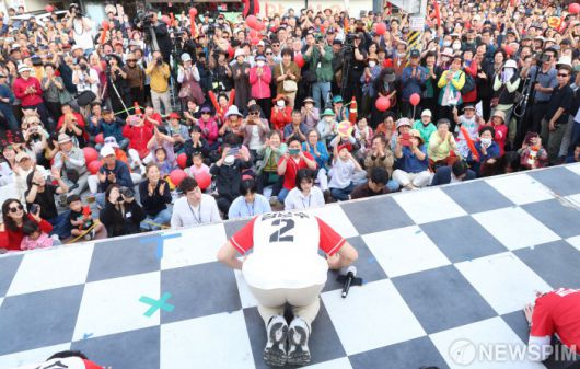 [당진=뉴스핌] 최지환 기자 = 김문수 국민의힘 대선 후보가 25일 충남 당진시장 오거리에서 열린 유세에서 시민들에게 큰절하고 있다. 2025.05.25 choipix16@newspim.com