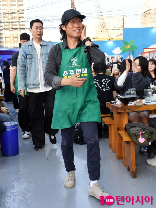 [텐아시아=조준원 기자]배우 유해진이 25일 서울 중구 한 호프집에서 열린 소주전쟁 유해진과 함께하는 소주포차 오픈 행사에 참석해 포즈를 취하고 있다.