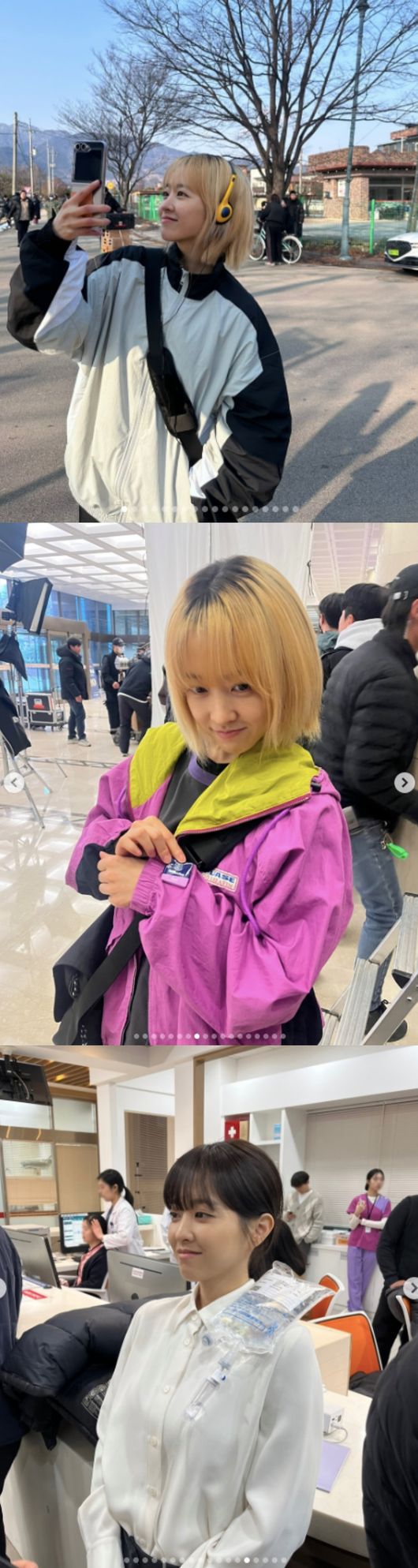 [OSEN=박하영 기자] 새로운 탈색 스타일로 변신한 배우 박보영이 드라마 비하인드 컷을 공개했다.