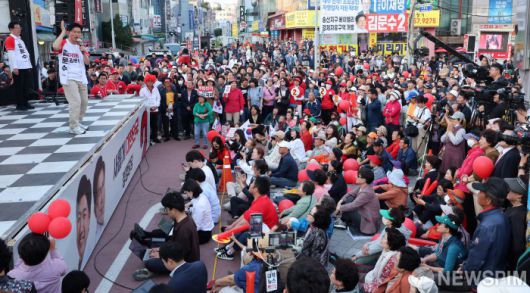 [당진=뉴스핌] 최지환 기자 = 김문수 국민의힘 대선 후보가 25일 충남 당진시장 오거리에서 열린 유세에서 지지를 호소하고 있다. 2025.05.25 choipix16@newspim.com
