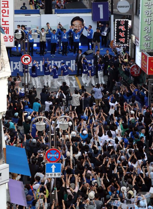 천안 찾아 지지호소하는 이재명 후보