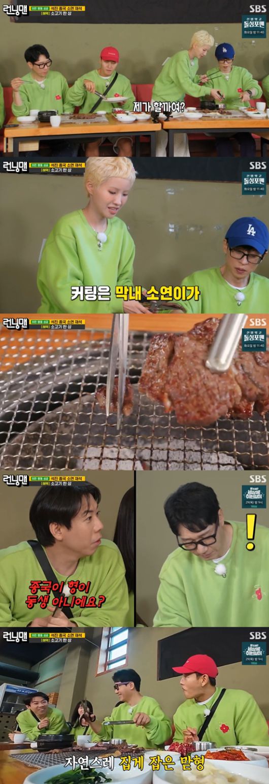유재석, 김종국, 지석진, 소연이 게임에 승리해서 소고기를 먹게 됐다. 다른 멤버들은 소고기를 쳐다볼 수밖에 없었다. 지예은은 "근데 진짜 육회 너무 맛있을 것 같다. 나 육회는 미치겠다"고 말했다. 미연도 "엄청 싱싱하다. 질이 좋아 보인다"고 공감했다.