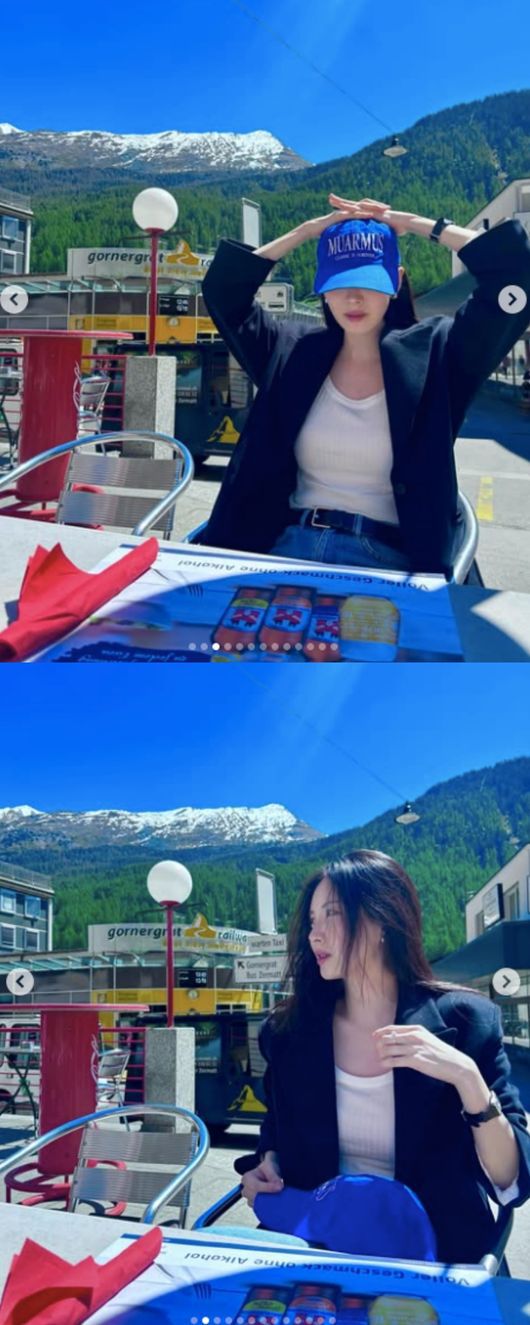사진 속 서현은 푸르른 하늘과 산맥을 배경으로 따사로운 햇살을 맞으며 포즈를 취하고 있다. 야외 테이블에 앉은 그는 턱을 괸 채 카메라를 응시하거나 모자를 착용해 화보 같은 일상을 전했다.