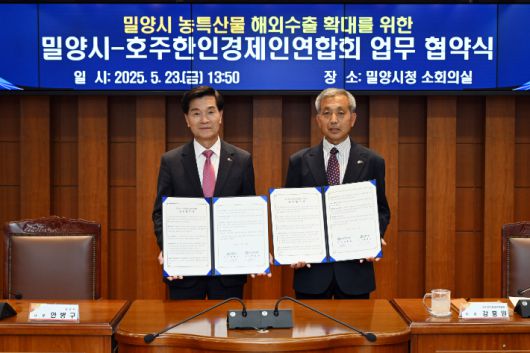 밀양시가 호주한인경제인연합회와 농특산물의 수출 확대를 위한 업무협약(MOU)을 체결했다.