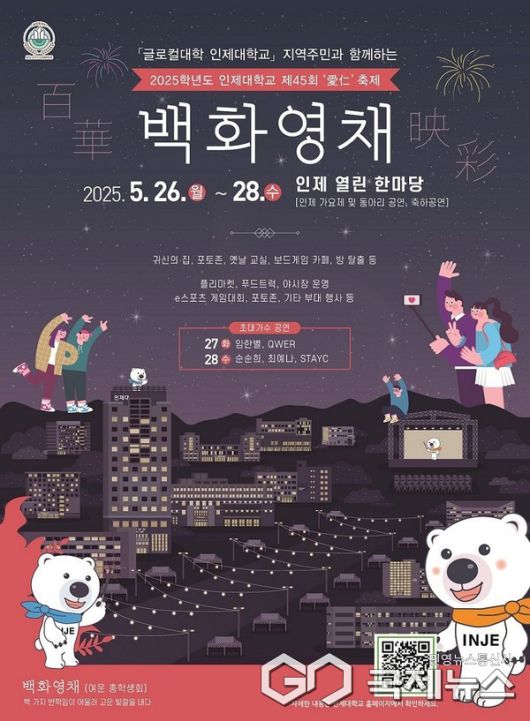 이번 축제는 '백 가지 반짝임이 어울려 고운 빛깔을 낸다'는 의미를 담아 단순한 대학 축제를 넘어 AI, 드론, e스포츠, 전공박람회 등 첨단 기술과 교육, 지역과 청년 문화가 어우러진 '미래형 글로컬 캠퍼스 축제'로 펼쳐진다는 게 인제대의 설명이다.