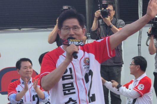 김 후보는 이날 저녁 온양온천역 광장에서 가진 유세에서 "유세할 때 방탄조끼를 입고 하는 사람이 있다"라면서 "일자리를 만들겠다고 일자리 조끼 입은 사람과 방탄조끼 입은 사람 중 누구를 뽑겠나?"라고 소리를 높였다.
