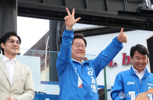 [천안=뉴스핌] 김학선 기자 = 이재명 더불어민주당 대통령 후보가 캐스팅보트인 충청권 공략에 나선 25일 오후 충남 천안시 신부문화거리를 찾아 지지를 호소했다. 2025.05.25 yooksa@newspim.com |