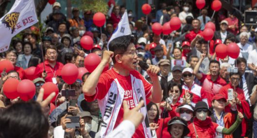 이어진 논산 유세에서 김 후보는 계엄·탄핵으로 어려워진 경제를 언급하며 “잘못한 건 용서해주시고 앞으로가 중요하다”며 큰 절을 올렸다. 강한 햇볕이 내리쬐는 날씨에도 김 후보의 유세를 보기 위한 인파가 건너편 길가까지 빼곡하게 들어찼다. 그늘이 없는 유세 현장에서 일부 시민은 땀을 닦아가며 “기호 2번 김문수”를 연호했고 국민의힘의 상징색인 빨간 풍선을 흔드는 지지자들도 적지 않았다. 태극기와 성조기를 양손에 든 장년층 지지자들도 “김문수 대통령”을 목청이 터져라 외쳤다. 한 지지자는 “집중해서 잘 봐야 된다”며 유세 현장을 함께 찾은 딸을 토닥였다.