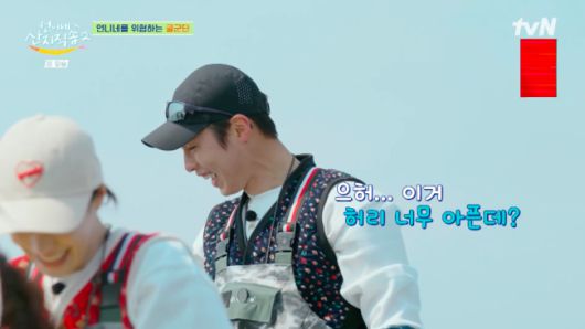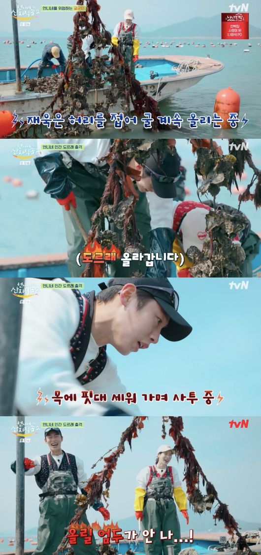 작업하던 중 이재욱은 바다에서 150kg 굴더미를 올리는 인간 도르래가 됐다. 187cm로 큰 키 탓에 이재욱은 허리를 깊이 숙여야 했고, 그는 “허리가 너무 아프다. 굴이 엄청 무겁다”라고 곡소리를 냈다.