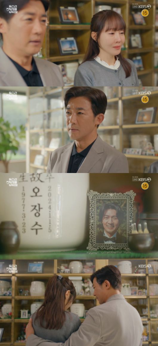 25일 방송된 KBS 2TV 주말드라마 '독수리 5형제를 부탁해!'(이하 '독수리 5형제') 34회에서는 한동석(안재욱 분)과 마광숙(엄지원)이 납골당을 찾은 모습이 그려졌다.